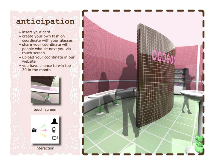 Consomme glasses were created to “enjoy more everyday life.” Their glasses have a business model of an intellectual impression, a natural beauty frame, and a gorgeous rhinestone model. Concept of the sore is customers to choose your glasses as they choose their favorite dessert in a bakery.